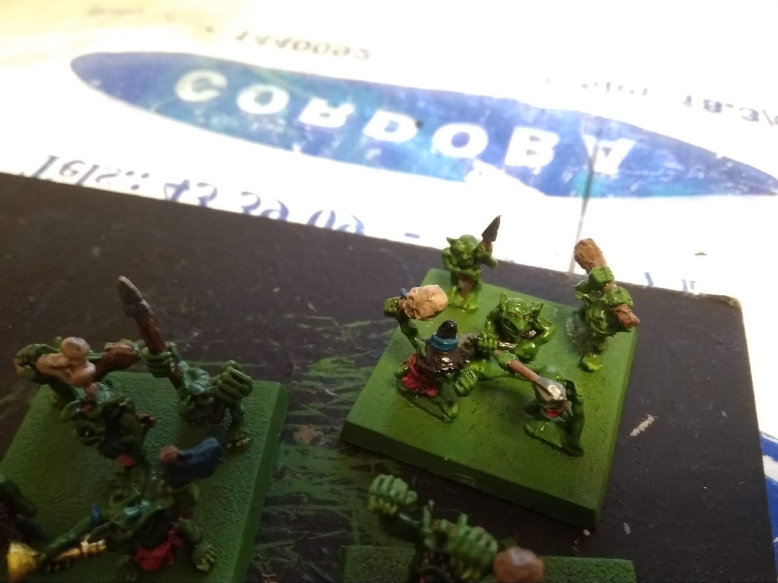 Para vainas, la bandera y algún brazalete quería usar otro color, y como el azul es mi más reciente adquisición y no hay mucho en el ejército, escogí ese color. Pues sí, snotlings blaugranas.