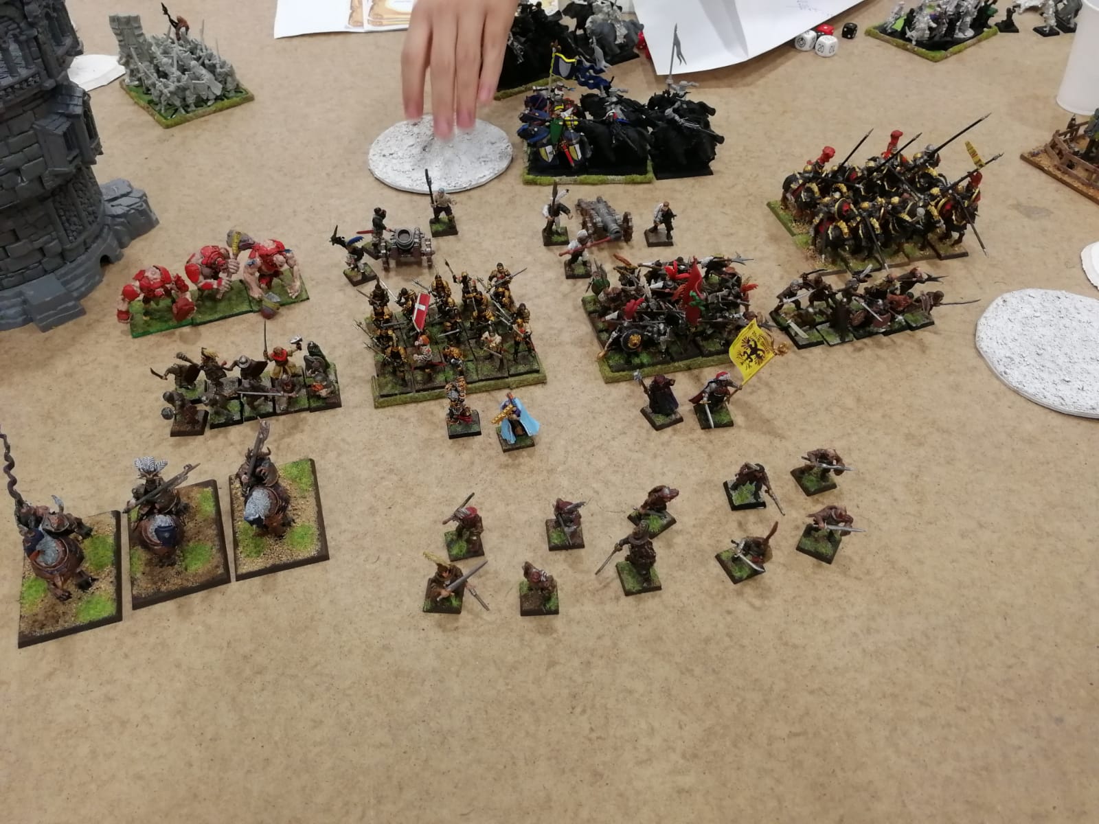 bloques de piqueros, ballesteros, algunos ogros, un gigante, 6 duelistas y una