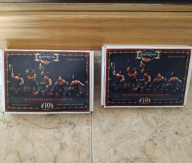 hechicera o herrera y caudillo goblin a pie y un porta. También tengo un brujo de Lost Kingdom que pillé en las Freak.