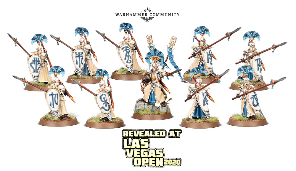 Sinceramente, por más que los esquemas se basen en blanco (medio crema) y azul, no son altos elfos. Y es normal, son para Age of Sigmar, son nuevas miniaturas, y las cosas cambian. No son radicalmente diferentes, y aunque os pueda resultar raro viniendo de mí, las tropas no me parecen mal. Por partes.