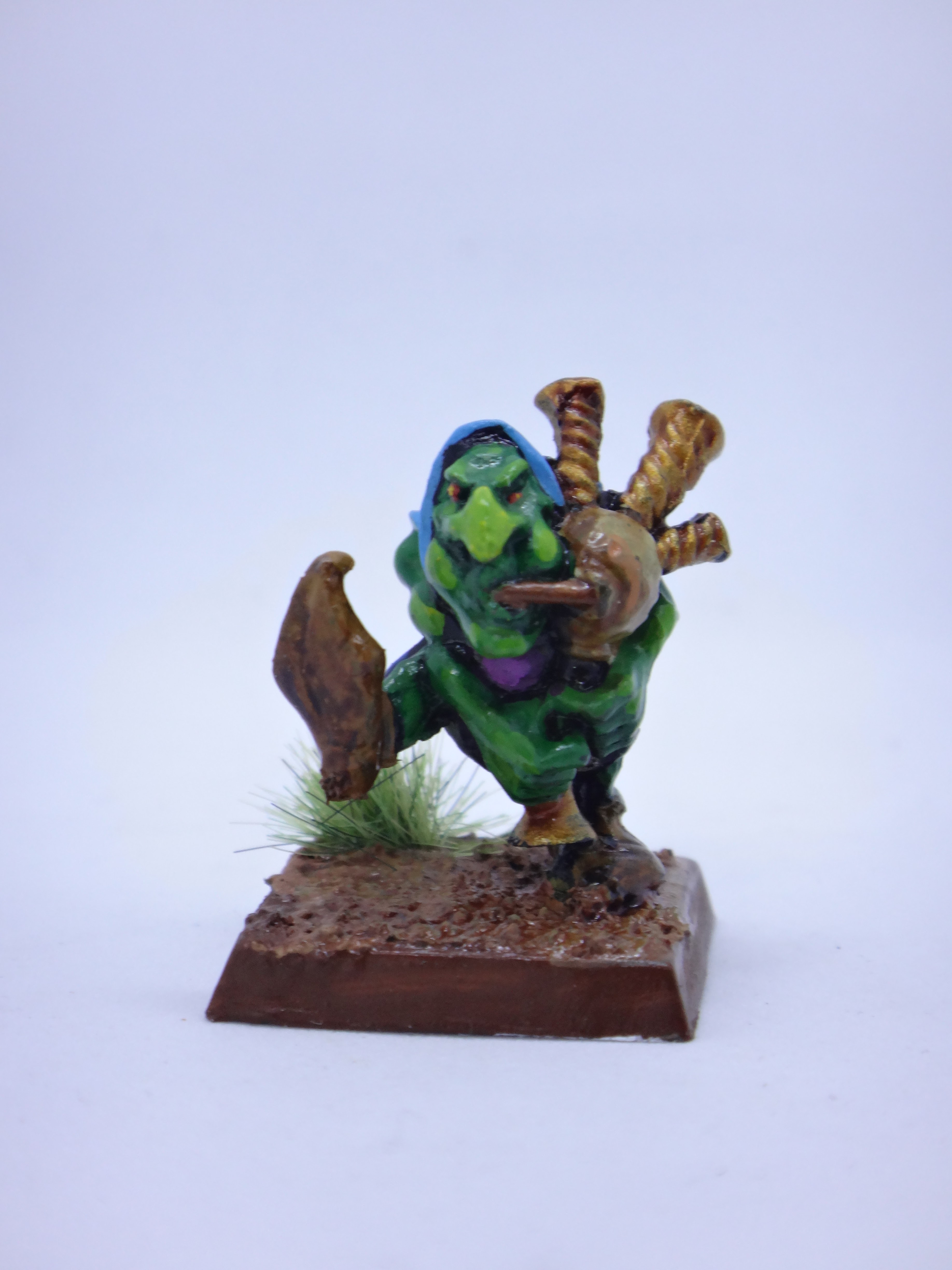 Como cada entrada, pinto algo atrasado del año pasado y esta vez ha caído un pastor de garrapato. También he repintado la choza goblin del paso de la cagalera para tener un poco de escenografía y unificar bases.