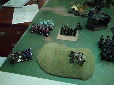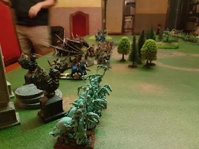 ¿El plan? Trabarse en combate lo antes posible para que no pudieran optimizar magia, matar alguna unidad generadora de dados, y abrumarles por pura superioridad numérica.