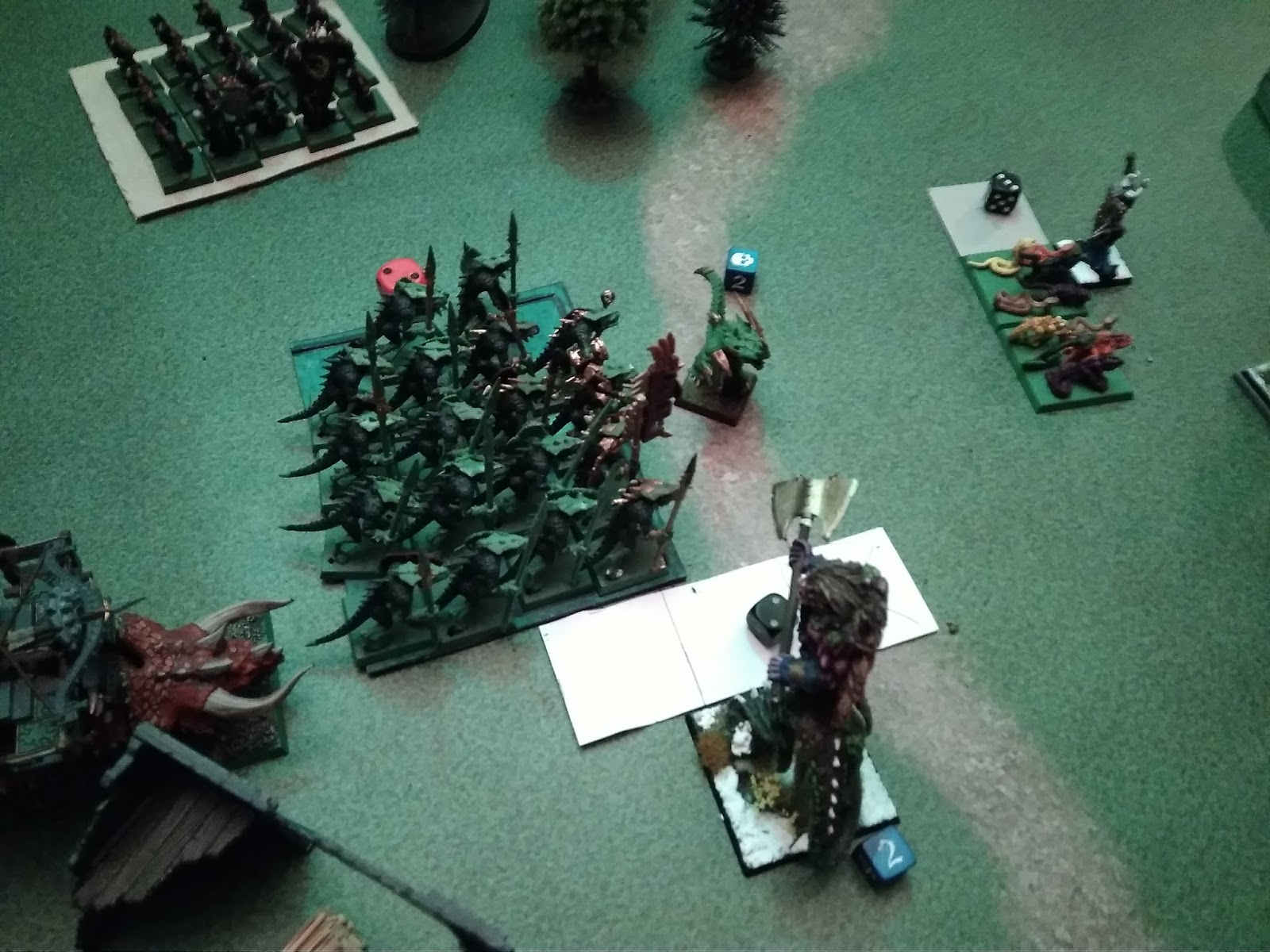 mis lanzeroz, los saurios cogieron el flanco del general caótico (que murió en