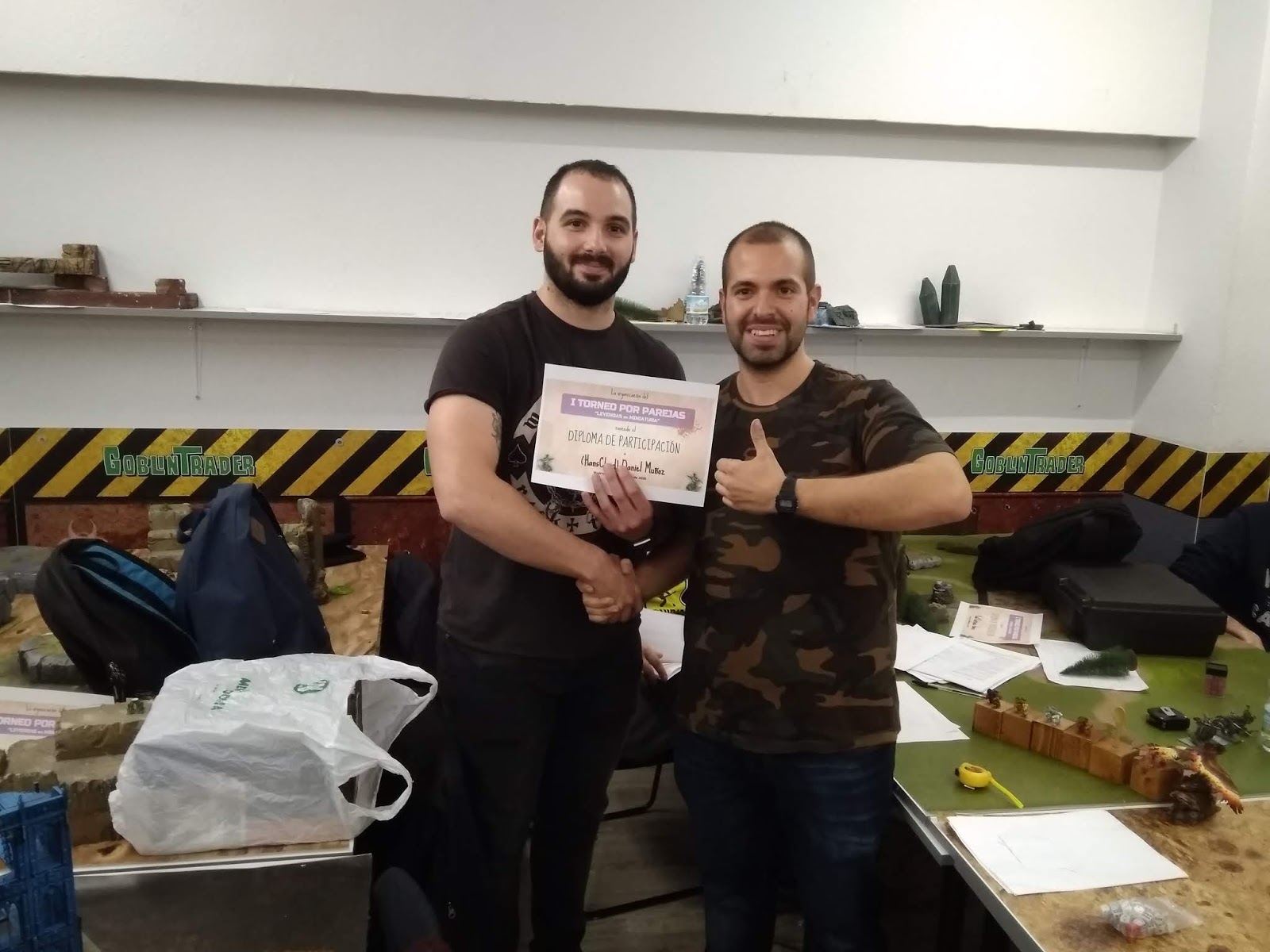 -Agradecimientos y saludos a los que se pasaron por allí aunque no jugaran. Creo haber reconocido a Guille, Luis, Sergio, Alberto, Manu (Khemri), Rafa, Barahair...y a otros tantos que se interesaron por lo que estábamos haciendo o que eran conocidos de los jugadores.