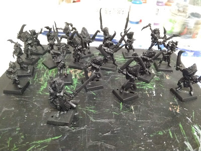 Buenos días a todos. En mi intento de llevar un ejército completamente pintado al I Torneo por parejas Leyendas en Miniatura, estuve pintando una unidad de elfas brujas, que me había donado el bueno de Namarie. Las elfas brujas son un mix de varias ediciones (y marcas), destacando una hechicera de Talismán que he pintando pensando en hacer de campeona elfa bruja, hechicera elfa oscura y sacerdotisa elfa bruja (sí, no está en el MDNR...todavía). Me lo he pasado pipa pintándolas, y os traigo el proceso.