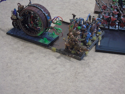 -En mi flanco izquierdo los esclavos estaban para coger el objetivo, acompañada de dos bloques (monjes y guerreros del clan), amerratadora, portadores del incensario y lanzadores de viento envenenado. Delante solo minitauros y perretes, así que el flanco peligraba poco.